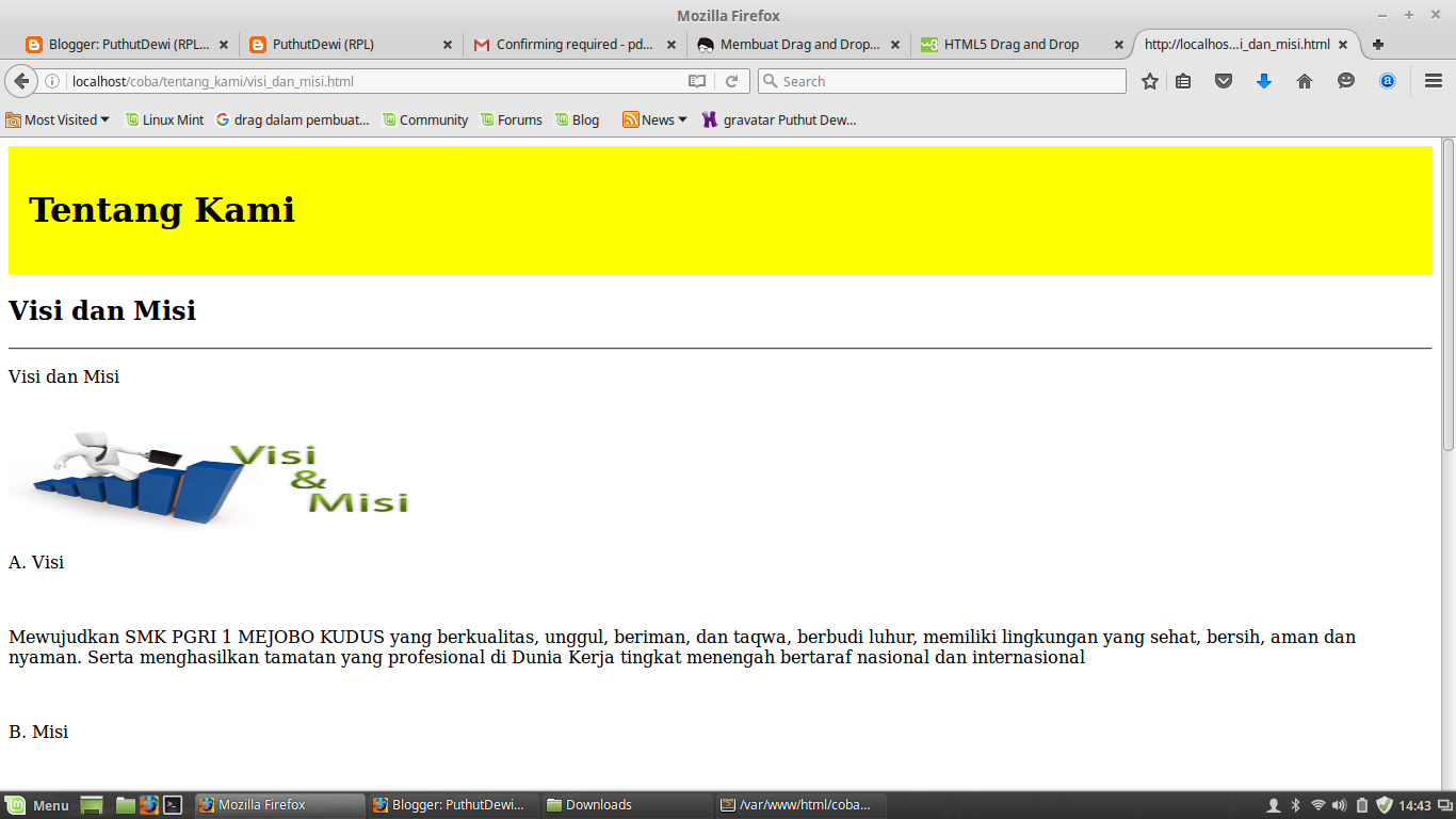 Disini saya akan Drag foto di bagian Visi dan Misi.